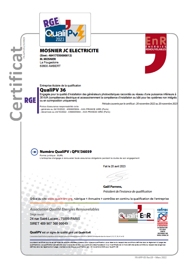 JEAN-CLAUDE MOSNIER ÉLECTRICITÉ - La Fougedoire, 63600 AMBERT - Tel. 06 80 400 700 | Mentions légales